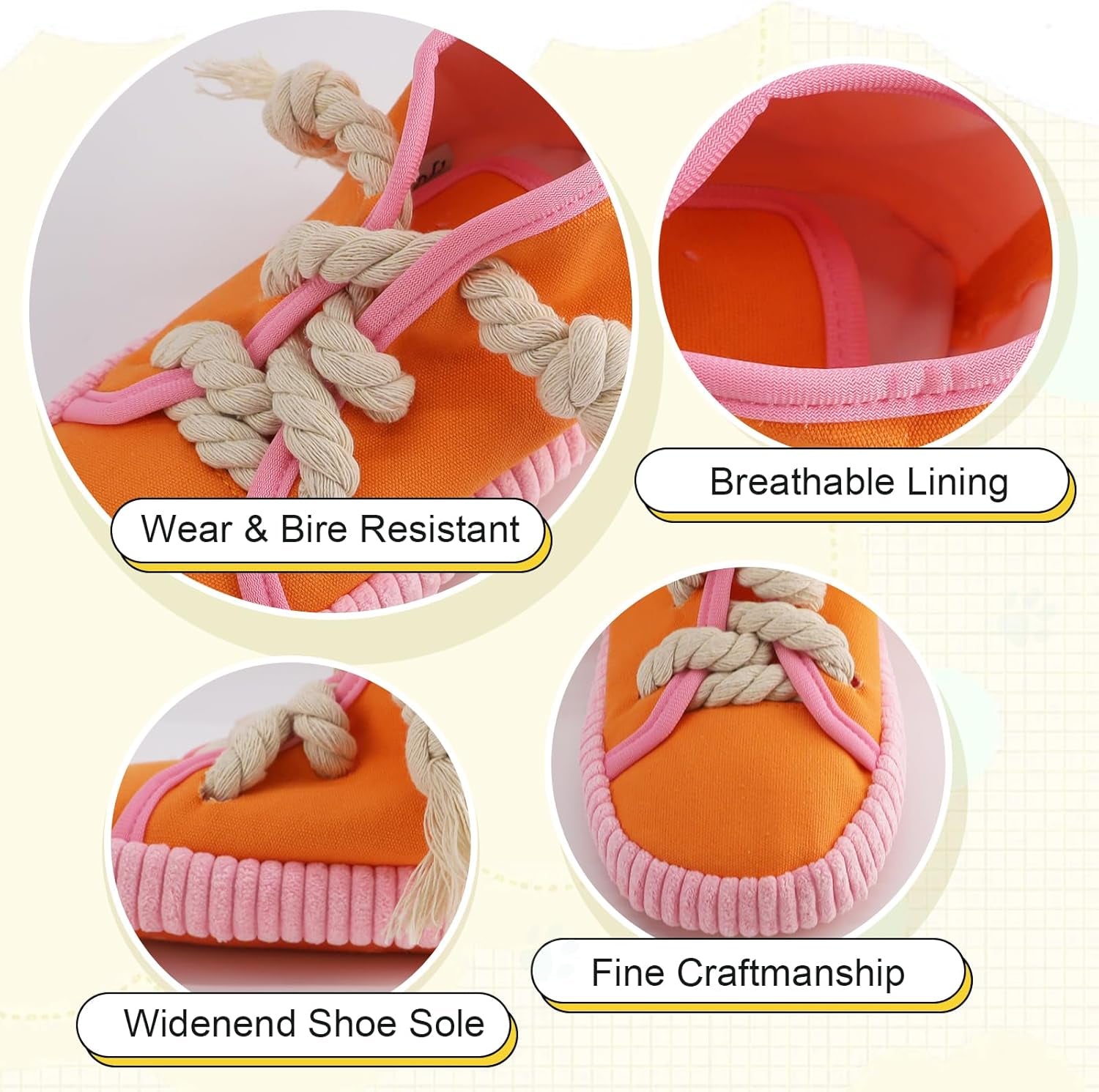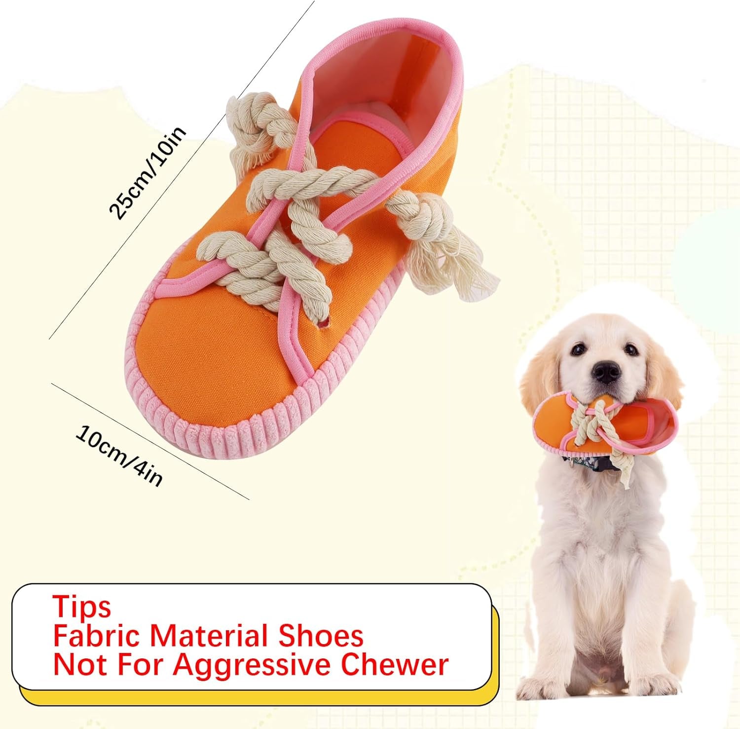 Dog Chew Toy, Dog Toys to Keep Them Busy Durable Teething Shoe Interactive Squeaky Puppy Toy,Small,Medium Breze, Machine Washable, Orange