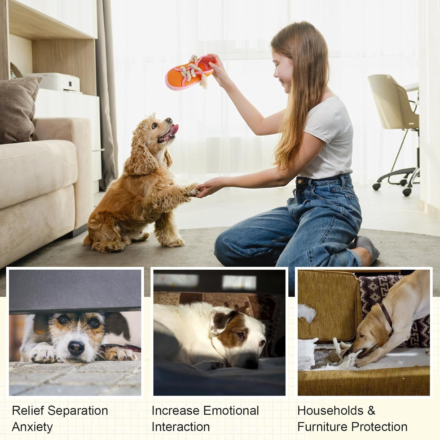 • ❤Reduce Loss: The appearance design of dog chew toys for puppies will attract dog's attention and satisfy your pup's chewing pleasure of biting slippers, which keeps your pet away from your shoes and furniture,dog toys to keep them busy