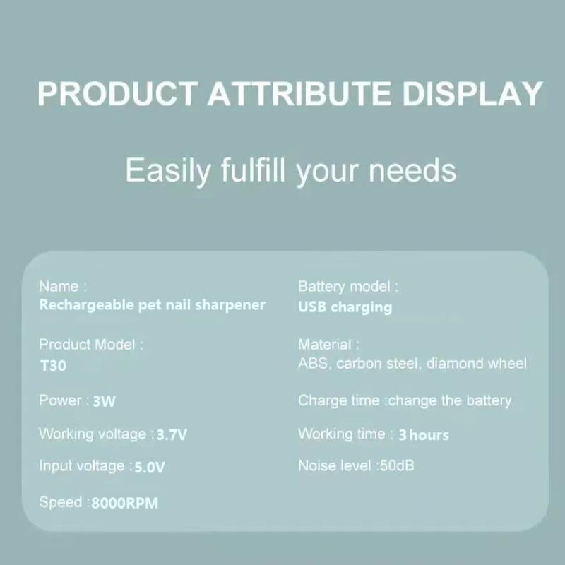 This Rechargeable pet nail grinder comes with a built-in lithium battery that provides long-lasting power. Simply connect the USB cable to any adapter, laptop, or power bank for quick recharging—no more replacing disposable batteries.