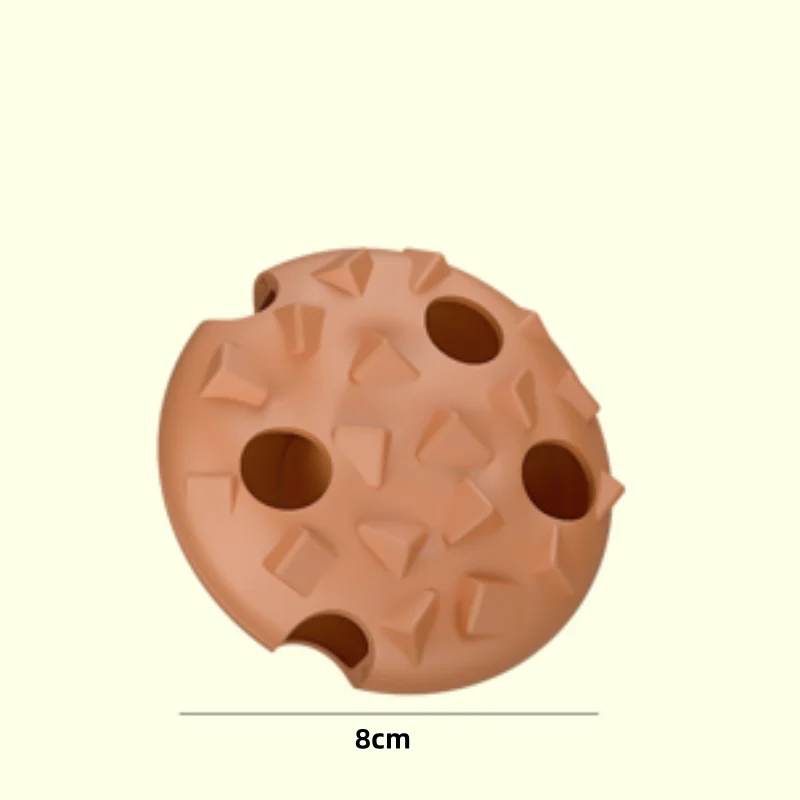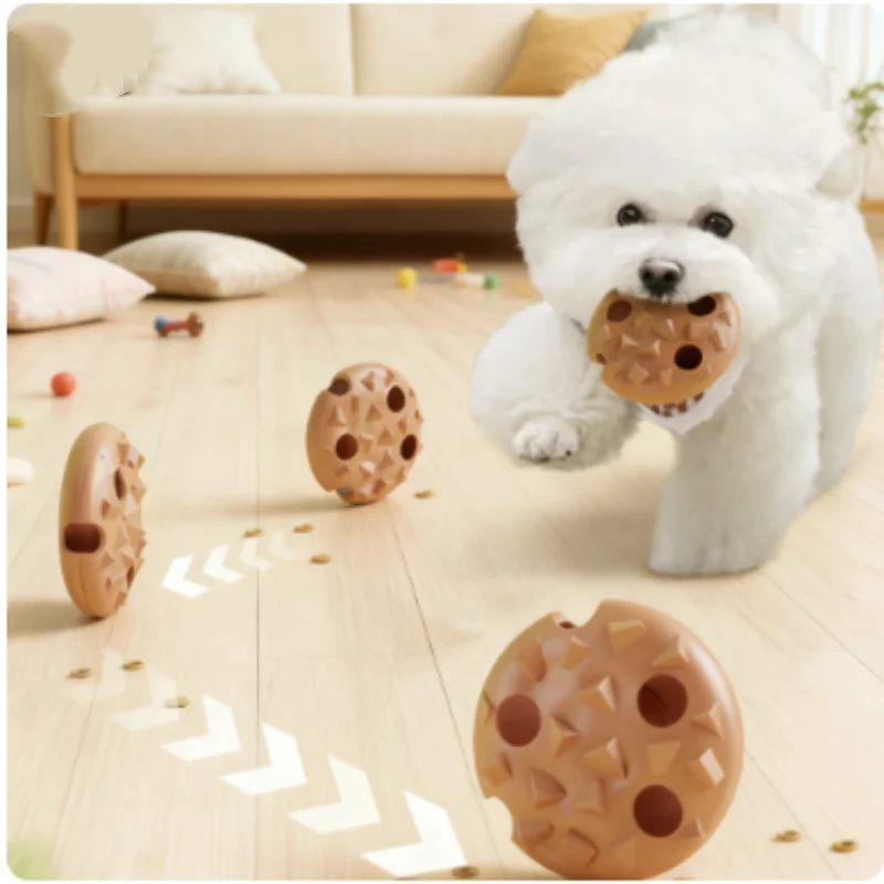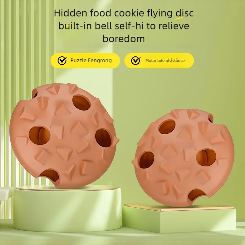 The cookie-shaped disc is easy for pets to grasp, making it perfect for fetch games or solo play.